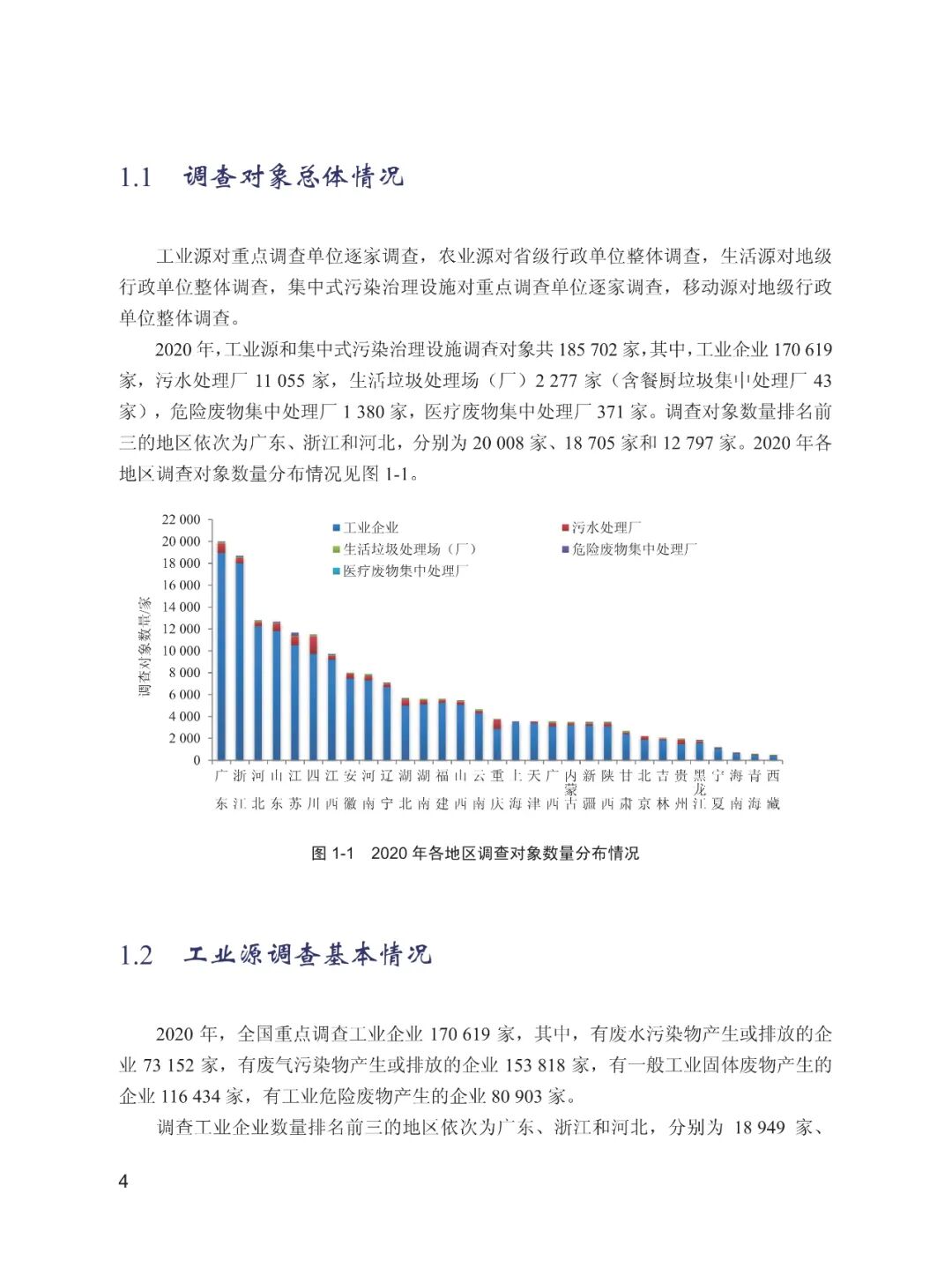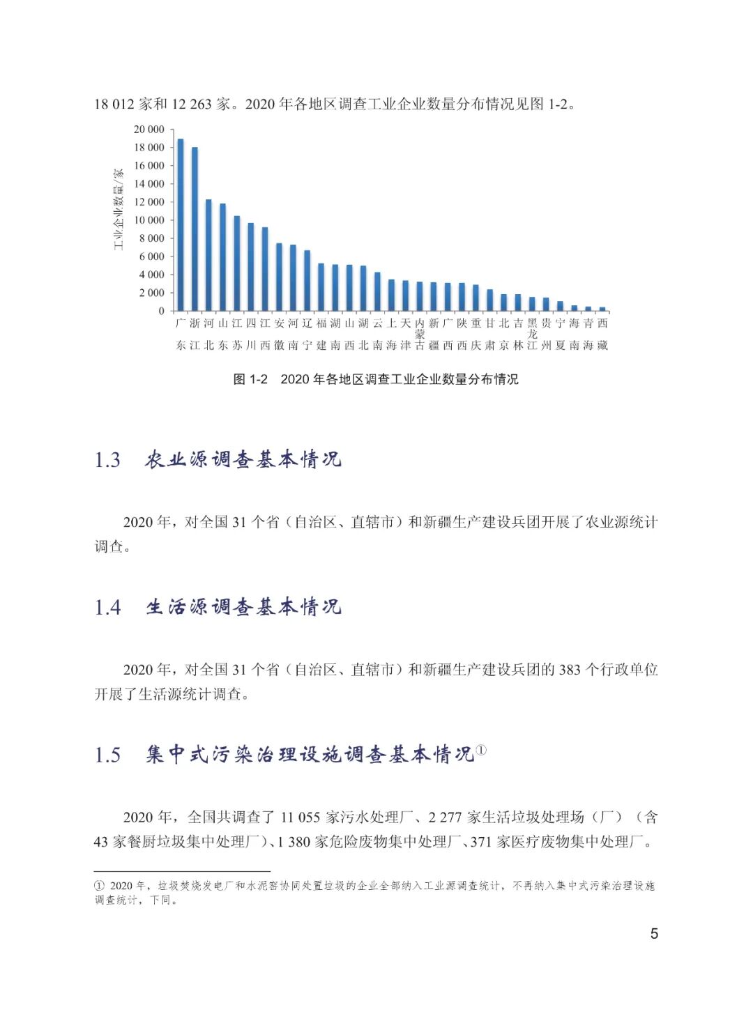 2020年统计年报数据主要来源于排放源统计调查。按照生态环境保护工作需要,与上一年相比,统计年报内容增加了工业源、生活源、移动源的挥发性有机物(VOCs)排放情况,农业源和生活源污染排放统计扩大了调查覆盖范围,年报数据增加了重点城市(区域)、重点流域污染排放情况。年报中首次发布了环境服务业财务统计,化学品环境国际公约管控物质生产或库存总体情况等相关内容。