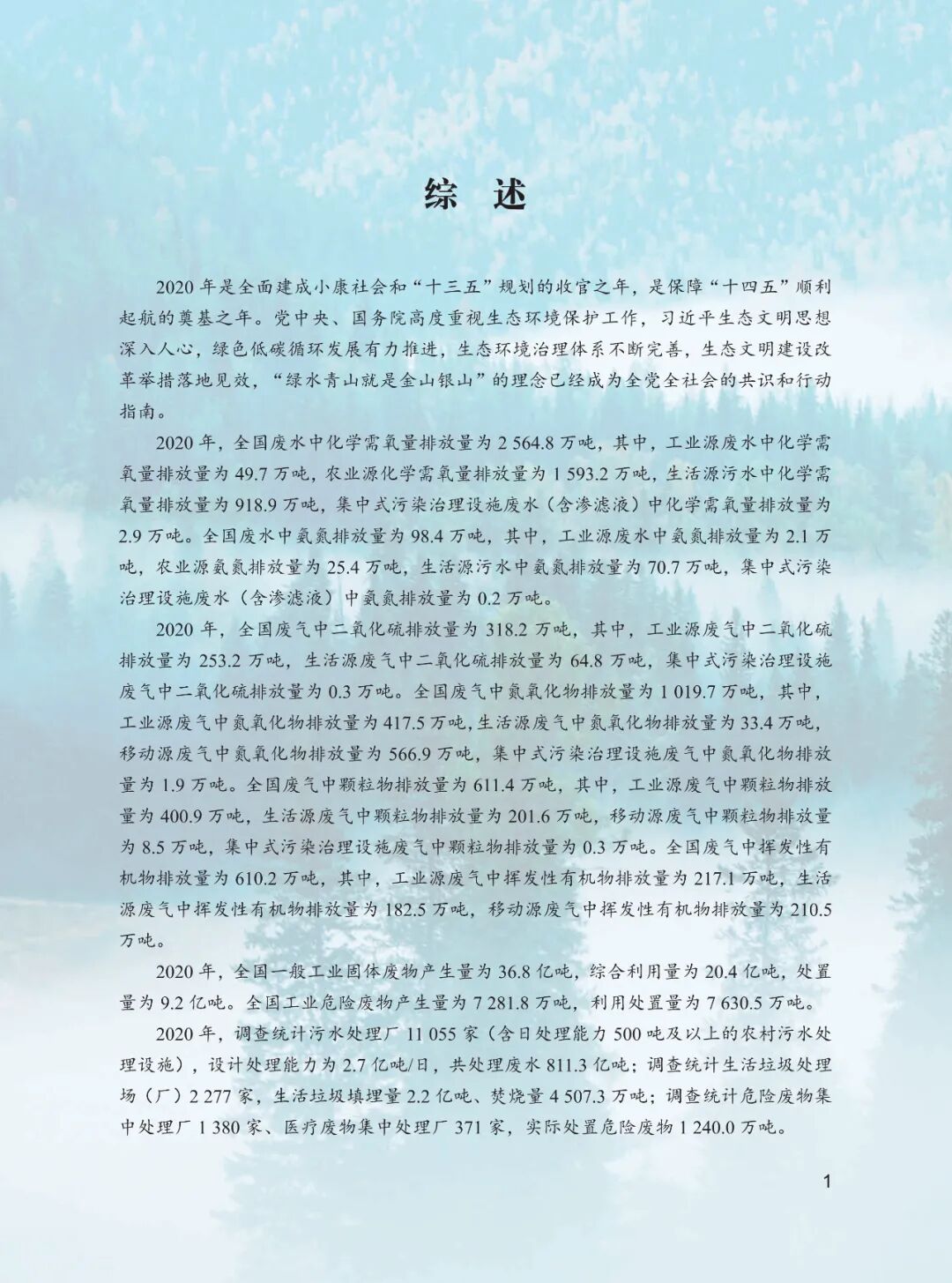 2月23日,生态环境部召开2月例行新闻发布会,生态环境部新闻发言人刘友宾介绍:2020年中国生态环境统计年报已完成并公开出版,公布了2020年全国污染物排放及治理、生态环境管理等情况,覆盖全国31个省(自治区、直辖市)及新疆生产建设兵团。